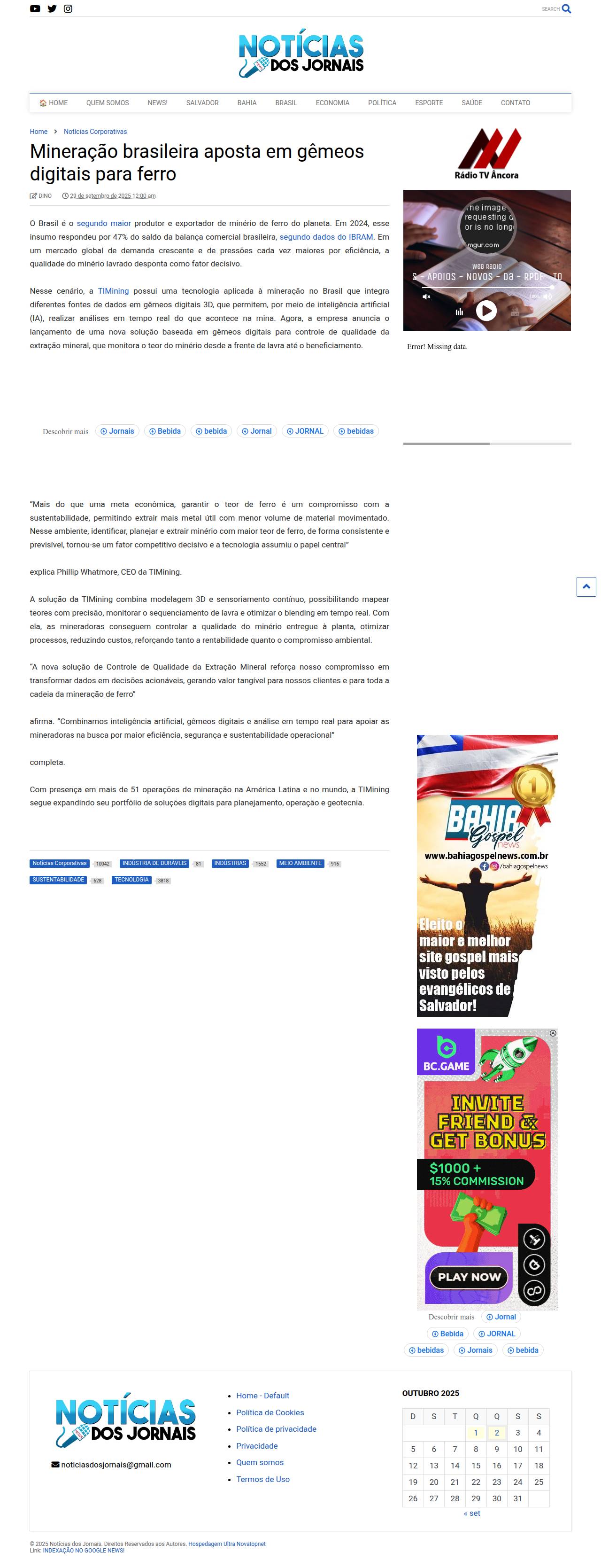 29/09/2025 - Noticias dos Jornais